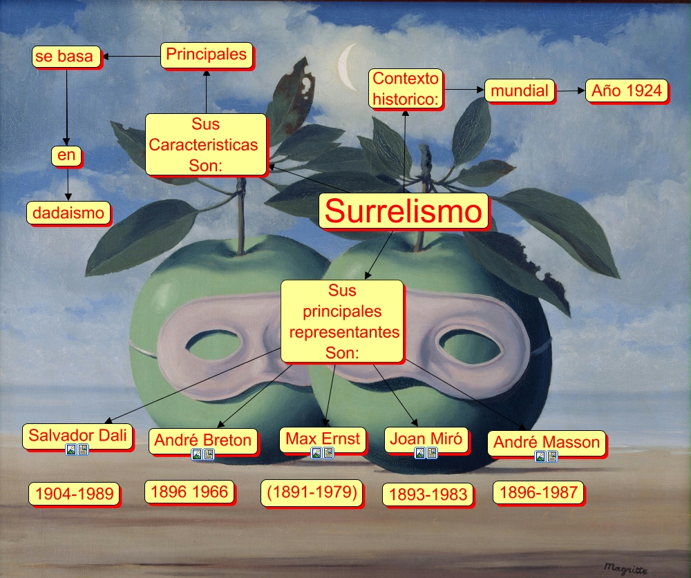 Este Cmap, tiene información relacionada con: Surrealismo, Surrelismo Sus principales representantes Son: Joan Miró, mundial ???? Año 1924, Surrelismo Contexto historico: mundial, Surrelismo Sus principales representantes Son: Salvador Dali, Surrelismo Sus principales representantes Son: André Breton, Surrelismo Sus principales representantes Son: André Masson, Principales se basa en, Surrelismo Sus principales representantes Son: Max Ernst, Surrelismo Sus Caracteristicas Son: Principales, Principales se basa dadaismo