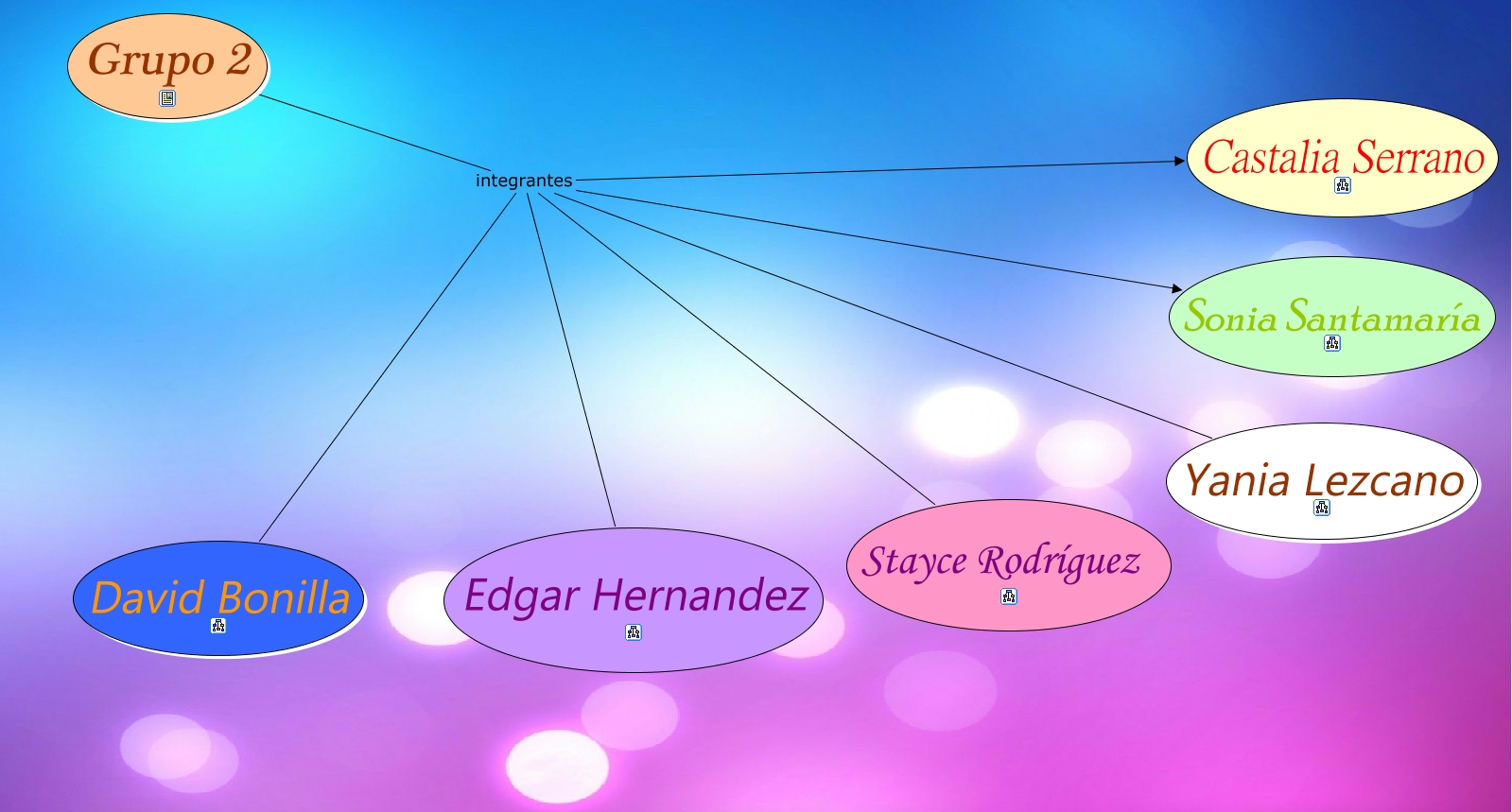 Este mapa conceptual tiene información relacionada a: Grupo 2, Grupo 2 integrantes Yania Lezcano, Grupo 2 integrantes David Bonilla, Grupo 2 integrantes Stayce Rodríguez, Grupo 2 integrantes Castalia Serrano, Grupo 2 integrantes Edgar Hernandez, Grupo 2 integrantes Sonia Santamaría