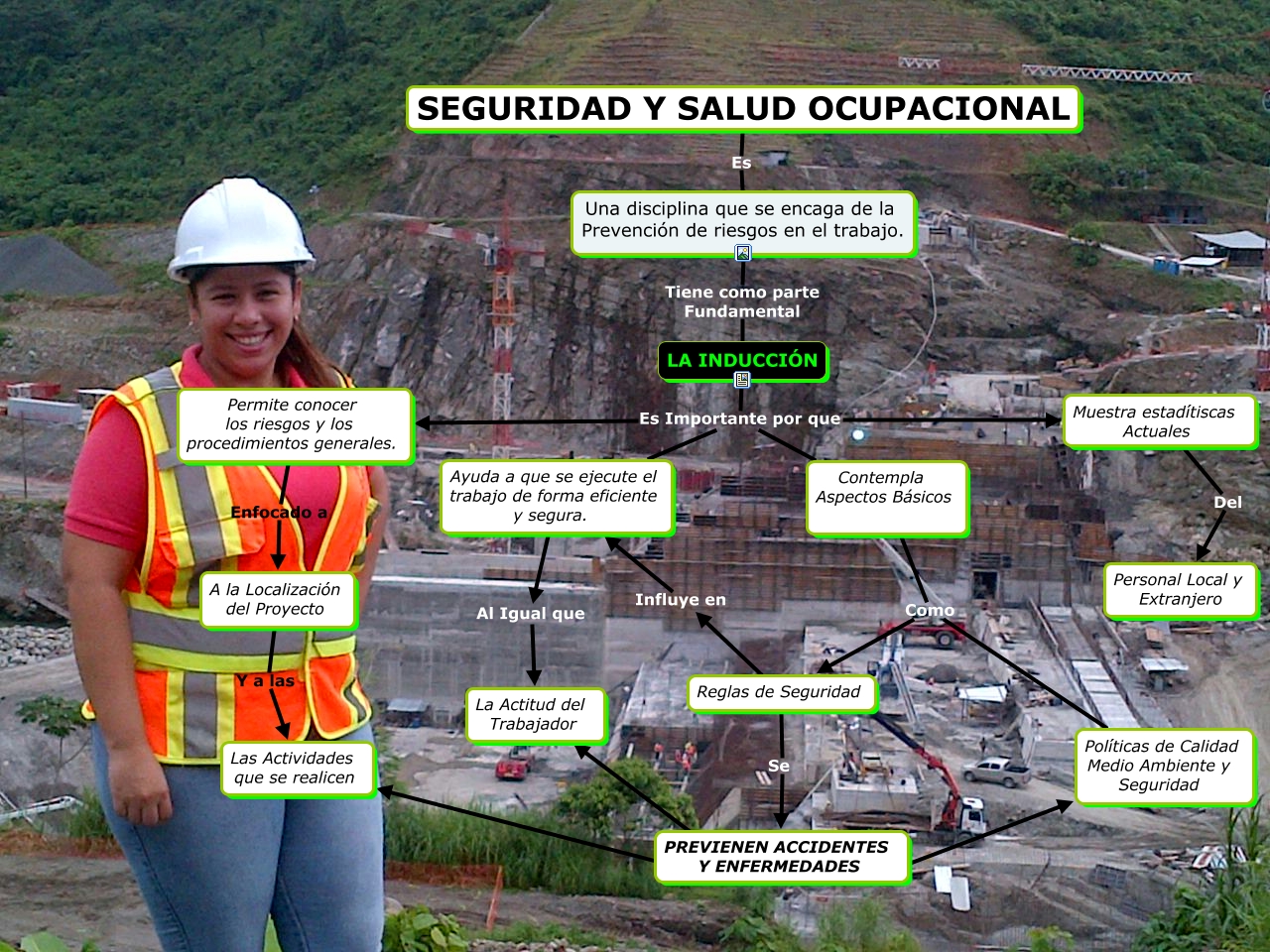 Este mapa conceptual tiene información relacionada a: INDUCCIÓN, LA INDUCCIÓN Es Importante por que Permite conocer los riesgos y los procedimientos generales., Contempla Aspectos Básicos Como Políticas de Calidad Medio Ambiente y Seguridad, Muestra estadítiscas Actuales Del Personal Local y Extranjero, LA INDUCCIÓN Es Importante por que Ayuda a que se ejecute el trabajo de forma eficiente y segura., Contempla Aspectos Básicos Como Reglas de Seguridad, Ayuda a que se ejecute el trabajo de forma eficiente y segura. Al Igual que La Actitud del Trabajador, A la Localización del Proyecto Y a las Las Actividades que se realicen, LA INDUCCIÓN Es Importante por que Muestra estadítiscas Actuales, Una disciplina que se encaga de la Prevención de riesgos en el trabajo. Tiene como parte Fundamental LA INDUCCIÓN, PREVIENEN ACCIDENTES Y ENFERMEDADES Las Actividades que se realicen, Reglas de Seguridad Se PREVIENEN ACCIDENTES Y ENFERMEDADES, PREVIENEN ACCIDENTES Y ENFERMEDADES Políticas de Calidad Medio Ambiente y Seguridad, LA INDUCCIÓN Es Importante por que Contempla Aspectos Básicos, Permite conocer los riesgos y los procedimientos generales. Enfocado a A la Localización del Proyecto, Reglas de Seguridad Influye en Ayuda a que se ejecute el trabajo de forma eficiente y segura., PREVIENEN ACCIDENTES Y ENFERMEDADES La Actitud del Trabajador, SEGURIDAD Y SALUD OCUPACIONAL Es Una disciplina que se encaga de la Prevención de riesgos en el trabajo.