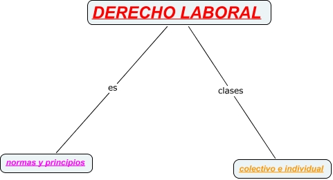 Este mapa conceptual tiene información relacionada a: derecho laboral lourdes, DERECHO LABORAL es normas y principios, DERECHO LABORAL clases colectivo e individual