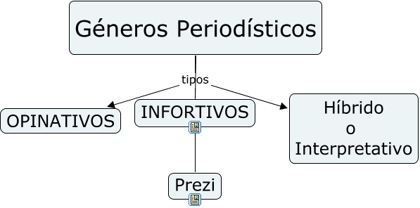 Este mapa conceptual tiene información relacionada a: Géneros Periodísticos, Géneros Periodísticos tipos OPINATIVOS, Géneros Periodísticos ???? Prezi, Géneros Periodísticos tipos Híbrido o Interpretativo, Géneros Periodísticos tipos INFORTIVOS