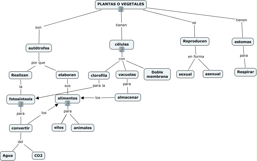 Este Cmap, tiene información relacionada con: LAS PLANTAS O VEGETALES, alimentos para animales, clorofila para la fotosíntesis, PLANTAS O VEGETALES tienen estomas, Realizan la fotosíntesis, estomas para Respirar, elaboran sus alimentos, almacenar los alimentos, autótrofos por que Realizan, PLANTAS O VEGETALES son autótrofos, células con vacuolas, Reproducen en forma sexual, autótrofos por que elaboran, Reproducen en forma asexual, PLANTAS O VEGETALES se Reproducen, células con clorofila, alimentos para ellos, convertir los alimentos, PLANTAS O VEGETALES tienen células, convertir del Agua, vacuolas para almacenar