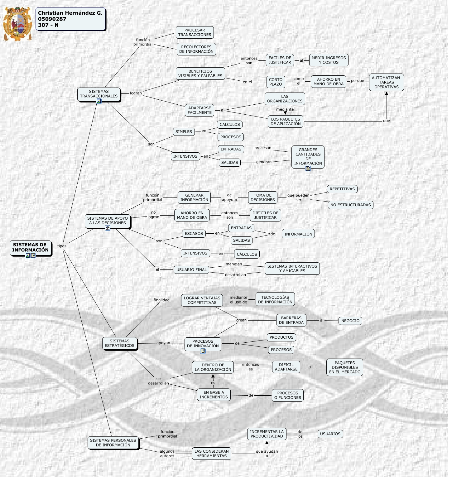 Este Cmap, tiene información relacionada con: Sistemas de Información I, EN BASE A INCREMENTOS es DENTRO DE LA ORGANIZACIÓN, SISTEMAS DE APOYO A LAS DECISIONES función primordial GENERAR INFORMACIÓN, SISTEMAS DE INFORMACIÓN tipos SISTEMAS DE APOYO A LAS DECISIONES, SISTEMAS TRANSACCIONALES son INTENSIVOS, SISTEMAS PERSONALES DE INFORMACIÓN función primordial INCREMENTAR LA PRODUCTIVIDAD, DENTRO DE LA ORGANIZACIÓN entonces es DIFICIL ADAPTARSE, SISTEMAS ESTRATÉGICOS apoyan PROCESOS DE INNOVACIÓN, PROCESOS DE INNOVACIÓN de PROCESOS, USUARIO FINAL manejan SISTEMAS INTERACTIVOS Y AMIGABLES, SISTEMAS DE INFORMACIÓN tipos SISTEMAS ESTRATÉGICOS, SISTEMAS ESTRATÉGICOS se desarrollan EN BASE A INCREMENTOS, INTENSIVOS en CÁLCULOS, AHORRO EN MANO DE OBRA entonces son DIFICILES DE JUSTIFICAR, INTENSIVOS en ENTRADAS, SISTEMAS TRANSACCIONALES logran BENEFICIOS VISIBLES Y PALPABLES, INTENSIVOS en SALIDAS, SIMPLES en PROCESOS, ESCASOS en ENTRADAS, SISTEMAS TRANSACCIONALES función primordial RECOLECTORES DE INFORMACIÓN, BARRERAS DE ENTRADA al NEGOCIO