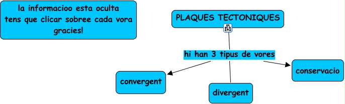 Este mapa conceptual tiene información relacionada a: plauqes tectoniques, PLAQUES TECTONIQUES hi han 3 tipus de vores convergent, PLAQUES TECTONIQUES hi han 3 tipus de vores conservacio, PLAQUES TECTONIQUES hi han 3 tipus de vores divergent