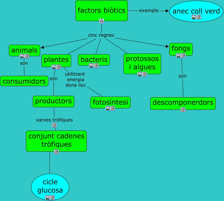 Este Cmap, tiene información relacionada con: factors biòtics, plantes utilitzant energia dona lloc fotosíntesi, plantes són productors, factors biòtics cinc regnes bacteris, factors biòtics cinc regnes plantes, conjunt cadenes tròfiques ???? cicle glucosa, factors biòtics exemple anec coll verd, factors biòtics cinc regnes fongs, animals són consumidors, productors xarxes tròfiques conjunt cadenes tròfiques, factors biòtics cinc regnes animals, factors biòtics cinc regnes protossos i algues, fongs són descomponerdors