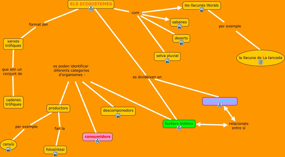 Este Cmap, tiene información relacionada con: Els ecosistemes, ELS ECOSISTEMES com deserts, factors biòtics es poden identificar diferents categories d'organismes : descomponedors, xarxes tròfiques que són un conjunt de cadenes tròfiques, ELS ECOSISTEMES es divideixen en factors abiòtics, factors biòtics es poden identificar diferents categories d'organismes : productors, les llacunes litorals per exemple la llacuna de La tancada, factors biòtics es poden identificar diferents categories d'organismes : consumidors, ELS ECOSISTEMES format per xarxes tròfiques, ELS ECOSISTEMES es divideixen en factors biòtics, ELS ECOSISTEMES com les llacunes litorals, ELS ECOSISTEMES com sabanes, factors biòtics relacionats entre sí factors abiòtics, productors fan la fotosíntesi, ELS ECOSISTEMES com selva pluvial, productors per exemple canyís