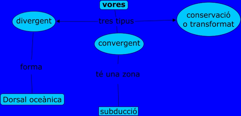 Este Cmap, tiene información relacionada con: vores, vores tres tipus conservació o transformat, divergent forma Dorsal oceànica, convergent té una zona subducció, vores tres tipus convergent, vores tres tipus divergent