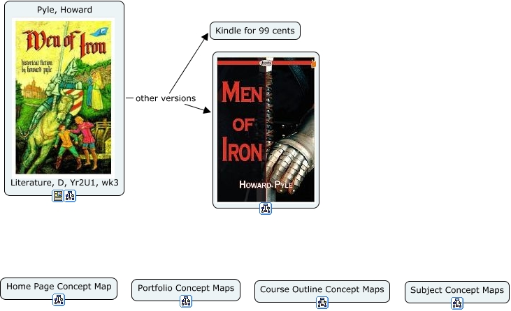 This Concept Map, created with IHMC CmapTools, has information related to: Men of Iron, Pyle, Howard Literature, D, Yr2U1, wk3 other versions Kindle for 99 cents, Pyle, Howard Literature, D, Yr2U1, wk3 other versions ????