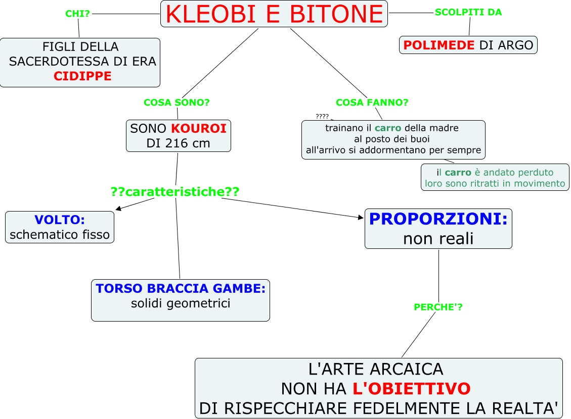 Questa Cmap, creata con IHMC CmapTools, contiene informazioni relative a: 2-KLEOBI E BITONE 2-, KLEOBI E BITONE CHI? FIGLI DELLA SACERDOTESSA DI ERA CIDIPPE, SONO KOUROI DI 216 cm ??caratteristiche?? VOLTO: schematico fisso, KLEOBI E BITONE SCOLPITI DA POLIMEDE DI ARGO, trainano il carro della madre al posto dei buoi all'arrivo si addormentano per sempre ???? il carro è andato perduto loro sono ritratti in movimento, PROPORZIONI: non reali PERCHE'? L'ARTE ARCAICA NON HA L'OBIETTIVO DI RISPECCHIARE FEDELMENTE LA REALTA', SONO KOUROI DI 216 cm ??caratteristiche?? PROPORZIONI: non reali, SONO KOUROI DI 216 cm ??caratteristiche?? TORSO BRACCIA GAMBE: solidi geometrici, KLEOBI E BITONE COSA SONO? SONO KOUROI DI 216 cm, KLEOBI E BITONE COSA FANNO? trainano il carro della madre al posto dei buoi all'arrivo si addormentano per sempre