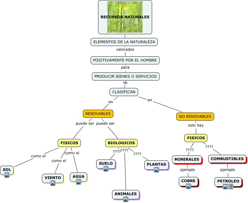 Este Cmap, tiene información relacionada con: RECURSOS NATURALES, PRODUCIR BIENES O SERVICIOS se CLASIFICAN, MINERALES ejemplo COBRE, NO RENOVABLES solo hay FISICOS, FISICOS ???? MINERALES, CLASIFICAN en RENOVABLES, ELEMENTOS DE LA NATURALEZA valorados POSITIVAMENTE POR EL HOMBRE, BIOLOGICOS ???? ANIMALES, CLASIFICAN en NO RENOVABLES, RENOVABLES puede ser BIOLOGICOS, RECURSOS NATURALES son ELEMENTOS DE LA NATURALEZA, BIOLOGICOS ???? PLANTAS, POSITIVAMENTE POR EL HOMBRE para PRODUCIR BIENES O SERVICIOS, FISICOS como el AGUA, BIOLOGICOS ???? SUELO, RENOVABLES puede ser FISICOS, FISICOS como el VIENTO, FISICOS como el SOL, COMBUSTIBLES ejemplo PETROLEO
