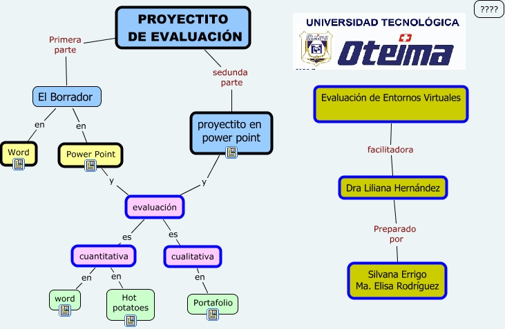 Este Cmap, tiene información relacionada con: Proyectito de Evaluación, evaluación es cuantitativa, El Borrador en Power Point, Power Point y evaluación, PROYECTITO DE EVALUACIÓN sedunda parte proyectito en power point, Dra Liliana Hernández Preparado por Silvana Errigo Ma. Elisa Rodríguez, cuantitativa en word, evaluación es cualitativa, El Borrador en Word, proyectito en power point y evaluación, Evaluación de Entornos Virtuales facilitadora Dra Liliana Hernández, cuantitativa en Hot potatoes, cualitativa en Portafolio, PROYECTITO DE EVALUACIÓN Primera parte El Borrador