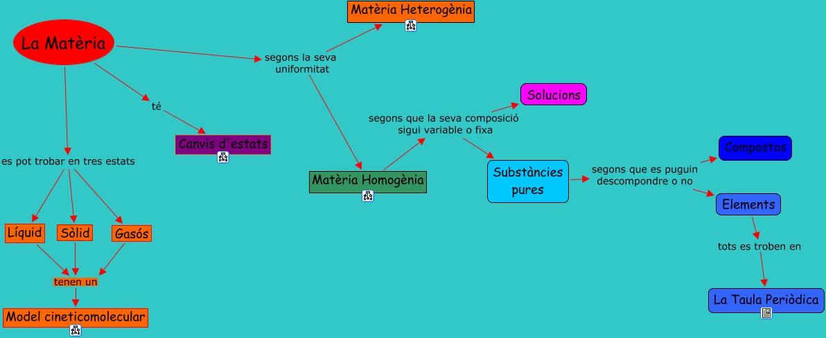 Este Cmap, tiene información relacionada con: F i Q, La Matèria té Canvis d'estats, Gasós tenen un Model cineticomolecular, Sòlid tenen un Model cineticomolecular, La Matèria es pot trobar en tres estats Líquid, La Matèria segons la seva uniformitat Matèria Homogènia, Matèria Homogènia segons que la seva composició sigui variable o fixa Solucions, Substàncies pures segons que es puguin descompondre o no Compostos, Elements tots es troben en La Taula Periòdica, Líquid tenen un Model cineticomolecular, Substàncies pures segons que es puguin descompondre o no Elements, La Matèria es pot trobar en tres estats Gasós, La Matèria es pot trobar en tres estats Sòlid, Matèria Homogènia segons que la seva composició sigui variable o fixa Substàncies pures, La Matèria segons la seva uniformitat Matèria Heterogènia