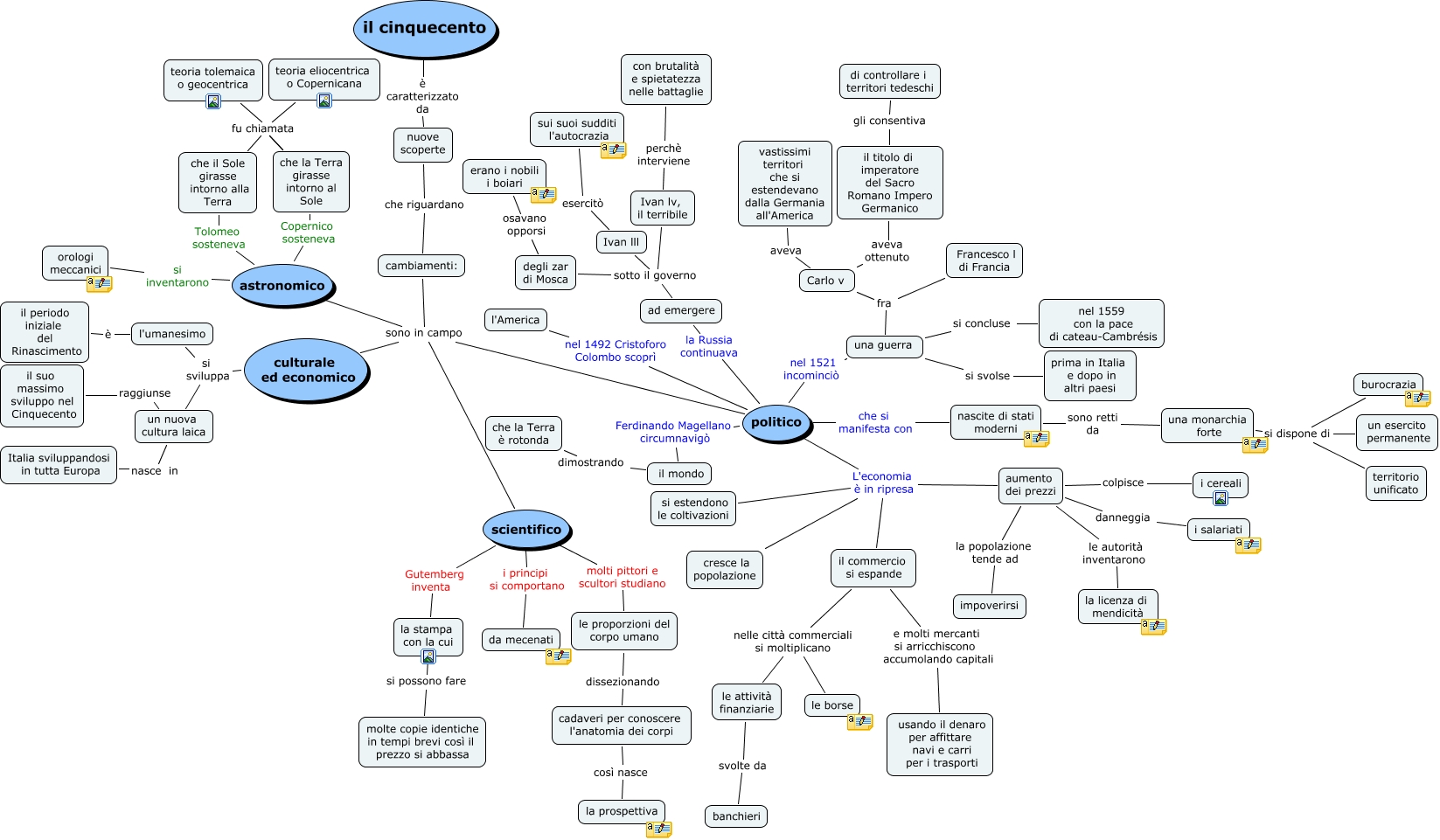 Questa Cmap, creata con IHMC CmapTools, contiene informazioni relative a: il Cinquecento Paolo, ad emergere sotto il governo degli zar di Mosca, le attività finanziarie svolte da banchieri, una guerra si concluse nel 1559 con la pace di cateau-Cambrésis, ad emergere sotto il governo Ivan lv, il terribile, il cinquecento è caratterizzato da nuove scoperte, le proporzioni del corpo umano dissezionando cadaveri per conoscere l'anatomia dei corpi, politico L'economia è in ripresa aumento dei prezzi, la stampa con la cui si possono fare molte copie identiche in tempi brevi così il prezzo si abbassa, astronomico Tolomeo sosteneva che il Sole girasse intorno alla Terra, degli zar di Mosca osavano opporsi erano i nobili i boiari, teoria eliocentrica o Copernicana fu chiamata che la Terra girasse intorno al Sole, politico L'economia è in ripresa si estendono le coltivazioni, cambiamenti: sono in campo scientifico, cambiamenti: sono in campo astronomico, politico nel 1492 Cristoforo Colombo scoprì l'America, una monarchia forte si dispone di un esercito permanente, cadaveri per conoscere l'anatomia dei corpi così nasce la prospettiva, scientifico i principi si comportano da mecenati, culturale ed economico si sviluppa l'umanesimo, teoria tolemaica o geocentrica fu chiamata che la Terra girasse intorno al Sole