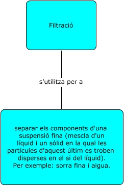 Este Cmap, tiene información relacionada con: filtració, Filtració s'utilitza per a separar els components d'una suspensió fina (mescla d'un líquid i un sòlid en la qual les partícules d'aquest últim es troben disperses en el si del líquid). Per exemple: sorra fina i aigua.