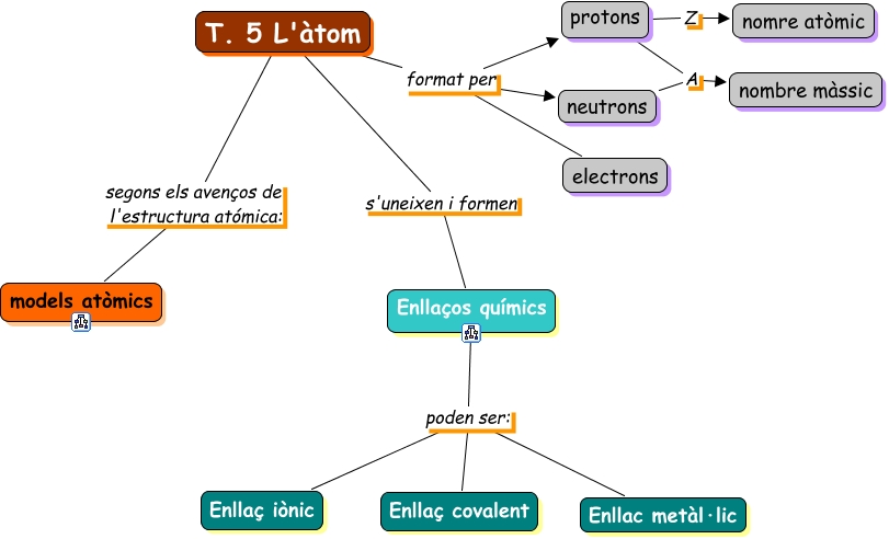 Este Cmap, tiene información relacionada con: L'àtom, protons Z nomre atòmic, T. 5 L'àtom format per neutrons, T. 5 L'àtom format per protons, Enllaços químics poden ser: Enllaç iònic, T. 5 L'àtom segons els avenços de l'estructura atómica: models atòmics, neutrons A nombre màssic, protons A nombre màssic, Enllaços químics poden ser: Enllac metàl·lic, Enllaços químics poden ser: Enllaç covalent, T. 5 L'àtom s'uneixen i formen Enllaços químics, T. 5 L'àtom format per electrons