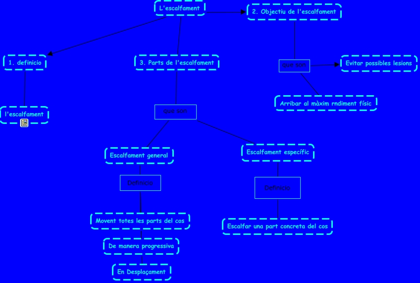 Este Cmap, tiene información relacionada con: estirament, Escalfament general Definicio En Desplaçament, Escalfament general Definicio De manera progressiva, 1. definicio ???? l'escalfament, Escalfament específic Definicio Escalfar una part concreta del cos, Escalfament general Definicio Movent totes les parts del cos, L'escalfament ???? 3. Parts de l'escalfament, 2. Objectiu de l'escalfament que son Evitar possibles lesions, L'escalfament ???? 2. Objectiu de l'escalfament, 3. Parts de l'escalfament que son Escalfament específic, 3. Parts de l'escalfament que son Escalfament general, 2. Objectiu de l'escalfament que son Arribar al màxim rndiment físic, L'escalfament ???? 1. definicio