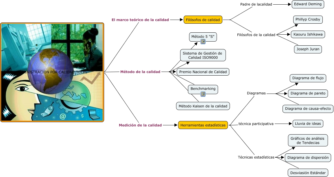 Este Cmap, tiene información relacionada con: mapa conceptual admin calidad todal, Herramientas estadísticas Técnicas estadísticas Gráficos de análisis de Tendecias, Filósofos de calidad Filósofos de la calidad Kaouru Ishikawa, Filósofos de calidad Padre de lacalidad Edward Deming, ADMINISTRACION POR CALIDAD TOTAL Medición de la calidad Herramientas estadísticas, Filósofos de calidad Filósofos de la calidad Phillyp Crosby, ADMINISTRACION POR CALIDAD TOTAL El marco teórico de la calidad Filósofos de calidad, Herramientas estadísticas Diagramas Diagrama de flujo, ADMINISTRACION POR CALIDAD TOTAL Método de la calidad Sistema de Gestión de Calidad ISO9000, ADMINISTRACION POR CALIDAD TOTAL Método de la calidad Método 5 "S", ADMINISTRACION POR CALIDAD TOTAL Método de la calidad Premio Nacional de Calidad, Herramientas estadísticas técnica participativa Lluvia de ideas, Herramientas estadísticas Técnicas estadísticas Desviasión Estándar, Herramientas estadísticas Diagramas Diagrama de causa-efecto, ADMINISTRACION POR CALIDAD TOTAL Método de la calidad Benchmarking, Filósofos de calidad Filósofos de la calidad Joseph Juran, Herramientas estadísticas Diagramas Diagrama de pareto, ADMINISTRACION POR CALIDAD TOTAL Método de la calidad Método Kaisen de la calidad, Herramientas estadísticas Técnicas estadísticas Diagrama de dispersión