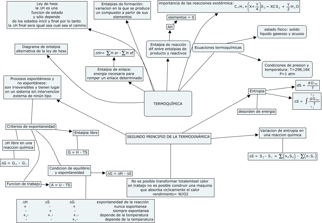 Este Cmap, tiene información relacionada con: termoquímica jotalu, Ecuaciones termoquímicas ???? Condiciones de presion y temperatura: T=298,16K P=1 atm, TERMOQUÍMICA ???? Entalpias de formación: variacion en la que se produce un compuesto a partir de sus elementos, SEGUNDO PRINCIPIO DE LA TERMODINÁMICA ???? Variacion de entropia en una reaccion quimica, AH ???? elementos = 0, ΔH libre en una reaccion química ???? <math xmlns="http://www.w3.org/1998/Math/MathML"> <mrow> <mtext> ΔG = </mtext> <mmultiscripts> <mtext> G </mtext> <mtext> 2 </mtext> <none/> </mmultiscripts> <mtext> - </mtext> <mmultiscripts> <mmultiscripts> <mtext> G </mtext> <mtext> 1 </mtext> <none/> </mmultiscripts> <none/> <mtext> </mtext> </mmultiscripts> </mrow> </math>, TERMOQUÍMICA ???? Entalpia de reacción dif entre entalpias de producto y reactivos, Criterios de expontaneidad ???? Condicion de equilibrio y espontaneidad, Criterios de expontaneidad ???? ΔH libre en una reaccion química, TERMOQUÍMICA ???? Ley de hess la ΔH es una funcion de estado y sólo depende de los estados inicil y final por lo tanto la ΔH final sera igual sea cual sea el camino, Ecuaciones termoquímicas ???? estado fisico: solido liquido gaseoso y acuoso, Criterios de expontaneidad ???? Funcion de trabajo, Ecuaciones termoquímicas ???? TERMOQUÍMICA, SEGUNDO PRINCIPIO DE LA TERMODINÁMICA ???? <math xmlns="http://www.w3.org/1998/Math/MathML"> <mrow> <mtext> No es posible transformar totalemteel calor