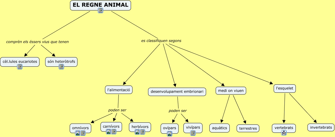 Este Cmap, tiene información relacionada con: el regne animal act 4, desenvolupament embrionari poden ser vivípars, medi on viuen terrestres, l'esquelet invertebrats, l'alimentació poden ser herbívors, l'esquelet vertebrats, EL REGNE ANIMAL es classifiquen segons l'alimentació, l'alimentació poden ser carnívors, EL REGNE ANIMAL comprèn els éssers vius que tenen cèl.lules eucariotes, l'alimentació poden ser omnívors, EL REGNE ANIMAL es classifiquen segons medi on viuen, medi on viuen aquàtics, EL REGNE ANIMAL es classifiquen segons desenvolupament embrionari, EL REGNE ANIMAL es classifiquen segons l'esquelet, EL REGNE ANIMAL comprèn els éssers vius que tenen són heteròtrofs, desenvolupament embrionari poden ser ovípars
