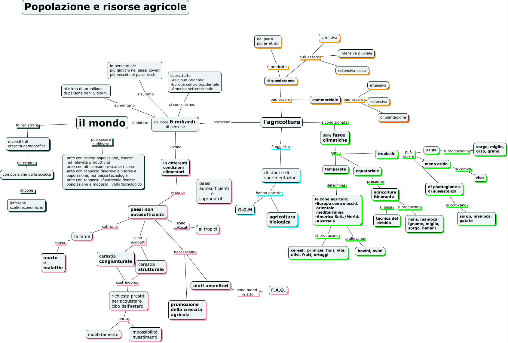 Questa Cmap, creata con IHMC CmapTools, contiene informazioni relative a: Popolazione e risorse agricole (AA) 3^