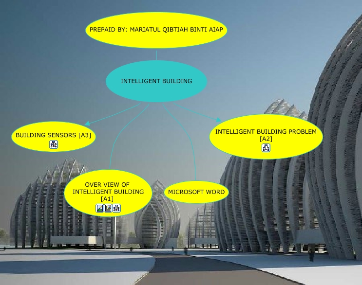 This Concept Map, created with IHMC CmapTools, has information related to: OVERALL SUMMARY, PREPAID BY: MARIATUL QIBTIAH BINTI AIAP INTELLIGENT BUILDING INTELLIGENT BUILDING PROBLEM [A2], PREPAID BY: MARIATUL QIBTIAH BINTI AIAP INTELLIGENT BUILDING MICROSOFT WORD, PREPAID BY: MARIATUL QIBTIAH BINTI AIAP INTELLIGENT BUILDING OVER VIEW OF INTELLIGENT BUILDING [A1], PREPAID BY: MARIATUL QIBTIAH BINTI AIAP INTELLIGENT BUILDING BUILDING SENSORS [A3]