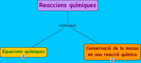 Este Cmap, tiene información relacionada con: Reaccions químiques t.7, Reaccions químiques contingut: Equacions químiques, Reaccions químiques contingut: Conservació de la massa en una reacció química
