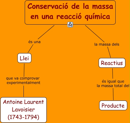 Este Cmap, tiene información relacionada con: Conservació de la massa, Reactius és igual que la massa total del Producte, Llei que va comprovar experimentalment Antoine Laurent Lavoisier (1743-1794), Conservació de la massa en una reacció química la massa dels Reactius, Conservació de la massa en una reacció química és una Llei