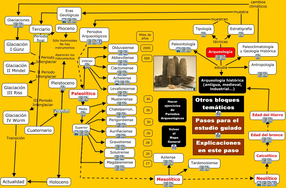 Periodos Arqueológicos, Mesolítico ???? Azilense, Pleistoceno Sólo hominoides No hay instrumentos Aparecen los instrumentos Paleolítico, Edad del Hierro ???? Arqueología histórica (antigua, medieval, industrial...), Superior ???? Magdaleniense, Arqueología estudia Antropología, Paleolítico ???? Inferior, Calcolítico ???? Edad del bronce, Plioceno Sólo hominoides No hay instrumentos Aparecen los instrumentos Periodos Arqueológicos, Arqueología estudia Arqueología histórica (antigua, medieval, industrial...), Arqueología estudia Paleontología