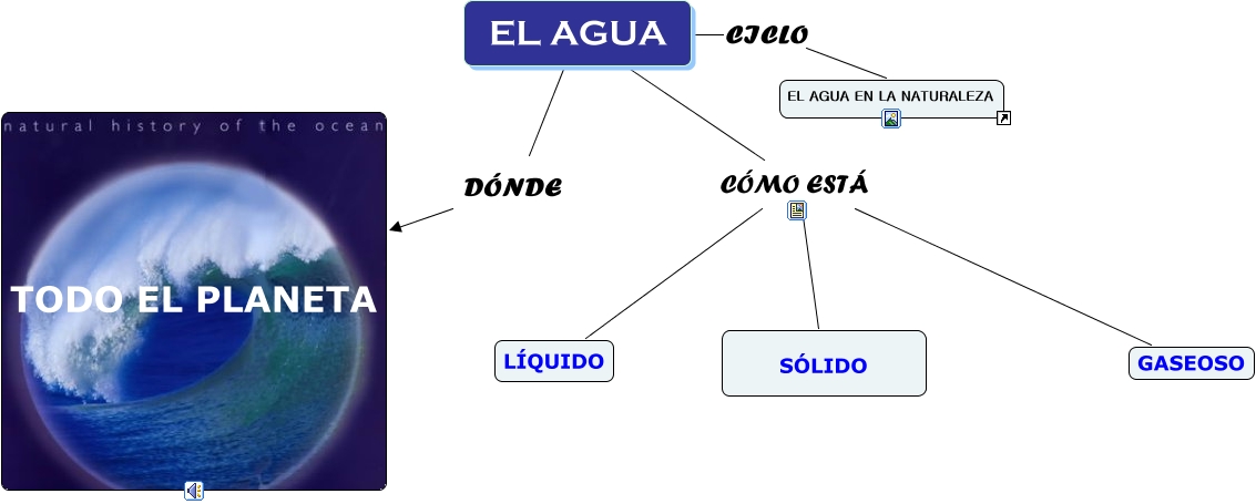 Este Cmap, tiene información relacionada con: EL AGUA, EL AGUA CÓMO ESTÁ GASEOSO, EL AGUA CÓMO ESTÁ LÍQUIDO, EL AGUA CICLO EL AGUA EN LA NATURALEZA, EL AGUA DÓNDE TODO EL PLANETA, EL AGUA CÓMO ESTÁ SÓLIDO