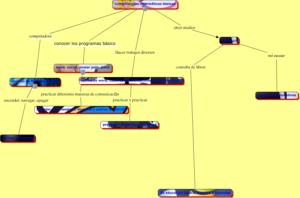 Este Cmap, tiene información relacionada con: Sin Título 1, internet red escolar programas educativos, Competencias informáticas básicas computadora menejo de la computadora, menejo de la computadora encender, navegar, apagar revisar el proceso, Competencias informáticas básicas Hacer trabajos diversos textos de word, cuadros de calificaciones, presentaciones, textos de word, cuadros de calificaciones, presentaciones practicar y practicas presentar productos diseñados, Competencias informáticas básicas otros medios internet, Competencias informáticas básicas conocer los programas básico word, excell, power poin, paint, internet consulta de libros de educación básica, cuentos y leyendas, word, excell, power poin, paint practicar diferentes maneras de comunicación trabajar con maestros, alumnos y padres de familia