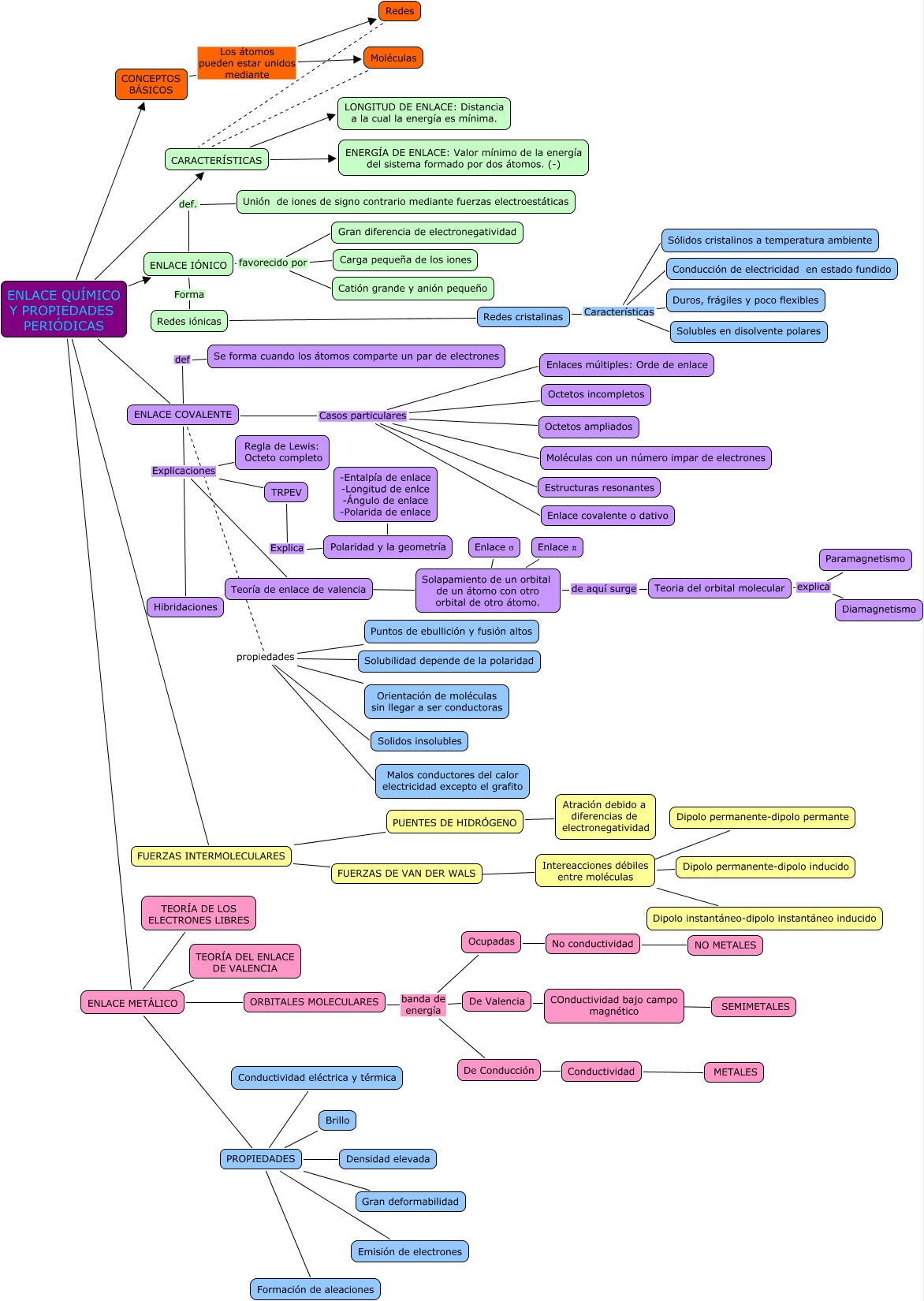 Este Cmap, tiene información relacionada con: HECTOR BALASTEGUI-Esquema tema 3, Redes iónicas Redes cristalinas, Redes cristalinas Características Conducción de electricidad en estado fundido, PROPIEDADES Emisión de electrones, Intereacciones débiles entre moléculas ???? Dipolo permanente-dipolo permante, Redes CARACTERÍSTICAS, Teoria del orbital molecular explica Diamagnetismo, PUENTES DE HIDRÓGENO Atración debido a diferencias de electronegatividad, ENLACE COVALENTE Casos particulares Octetos ampliados, Moléculas CARACTERÍSTICAS, PROPIEDADES Formación de aleaciones, ENLACE QUÍMICO Y PROPIEDADES PERIÓDICAS CARACTERÍSTICAS, Teoría de enlace de valencia ???? Solapamiento de un orbital de un átomo con otro orbital de otro átomo., ENLACE COVALENTE propiedades Solubilidad depende de la polaridad, ENLACE IÓNICO Forma Redes iónicas, ENLACE QUÍMICO Y PROPIEDADES PERIÓDICAS ENLACE METÁLICO, PROPIEDADES Conductividad eléctrica y térmica, No conductividad NO METALES, CARACTERÍSTICAS ENERGÍA DE ENLACE: Valor mínimo de la energía del sistema formado por dos átomos. (-), CONCEPTOS BÁSICOS Los átomos pueden estar unidos mediante Redes, Polaridad y la geometría -Entalpía de enlace -Longitud de enlce -Ángulo de enlace -Polarida de enlace