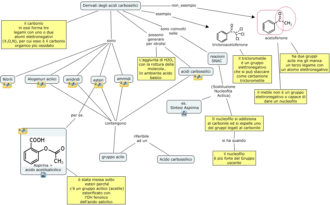 Questa Cmap, creata con IHMC CmapTools, contiene informazioni relative a: derivati ferretti, esteri per es. Aspirina = acido acetilsalicilico, Derivati degli acidi carbossilici possono generare per idrolisi acidi carbossilici, tricloroacetofenone il triclorometile è un gruppo elettronegativo che si può staccare come carbanione triclorometile, acidi carbossilici contengono gruppo acile, anidridi contengono gruppo acile, Derivati degli acidi carbossilici esempio tricloroacetofenone, Alogenuri acilici contengono gruppo acile, Derivati degli acidi carbossilici sono ammidi, Derivati degli acidi carbossilici sono coinvolti nelle reazioni SNAC, Derivati degli acidi carbossilici il carbonio in essi forma tre legami con uno o due atomi elettronegativi (X,O,N), per cui esso è il carbonio organico più ossidato, esteri contengono gruppo acile, Il nucleofilo si addiziona al carbonile ed si espelle uno dei gruppi legati al carbonile si ha quando il nucleofilo è più forte del Gruppo uscente, Derivati degli acidi carbossilici sono anidridi, Derivati degli acidi carbossilici non_esempio acetofenone, Derivati degli acidi carbossilici possono generare per idrolisi L'aggiunta di H2O, con la rottura della molecola.. In ambiente acido basico, ammidi contengono gruppo acile, reazioni SNAC (Sostituzione Nucleofila Acilica) es. Sintesi Aspirina, Derivati degli acidi carbossilici sono Alogenuri acilici, Aspirina = acido acetilsalicilico è stata messa sotto esteri perché c'è un gruppo acilico (acetile) esterificato con l'OH fenolico dell'acido salicilco, Derivati degli acidi carbossilici sono esteri