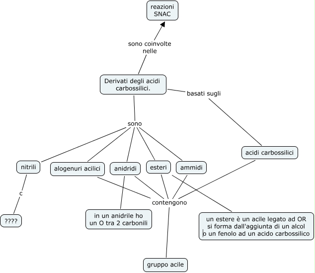Questa Cmap, creata con IHMC CmapTools, contiene informazioni relative a: aaa 123, Derivati degli acidi carbossilici. sono nitrili, Derivati degli acidi carbossilici. sono anidridi, esteri un estere è un acile legato ad OR si forma dall'aggiunta di un alcol o un fenolo ad un acido carbossilico, anidridi contengono gruppo acile, Derivati degli acidi carbossilici. sono ammidi, anidridi in un anidrile ho un O tra 2 carbonili, alogenuri acilici contengono gruppo acile, nitrili c ????, acidi carbossilici contengono gruppo acile, Derivati degli acidi carbossilici. sono esteri, Derivati degli acidi carbossilici. basati sugli acidi carbossilici, Derivati degli acidi carbossilici. sono alogenuri acilici, Derivati degli acidi carbossilici. sono coinvolte nelle reazioni SNAC, esteri contengono gruppo acile, ammidi contengono gruppo acile
