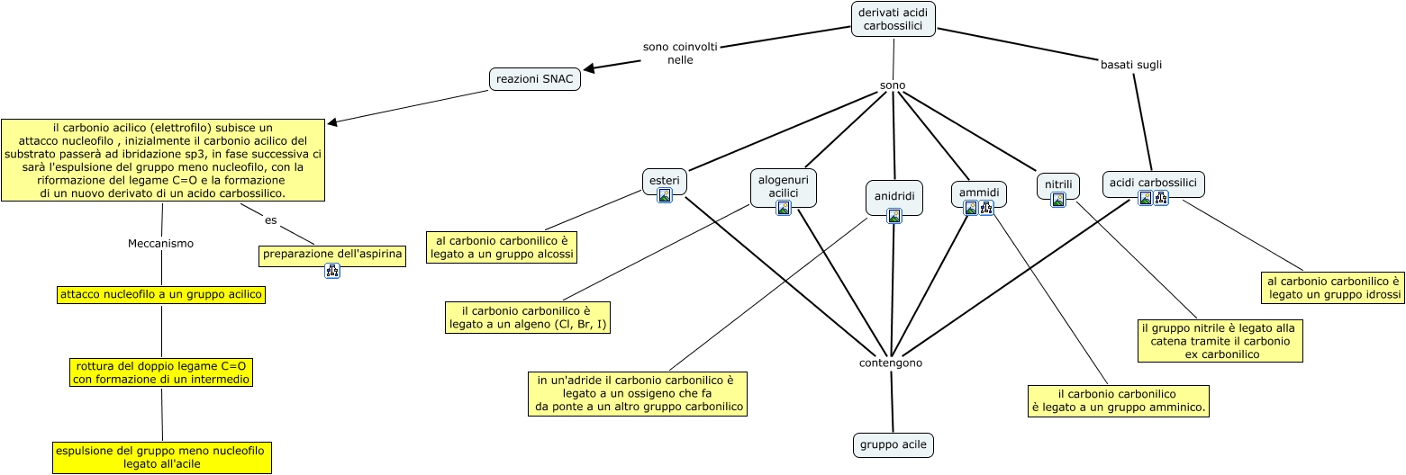 Questa Cmap, creata con IHMC CmapTools, contiene informazioni relative a: derivati acidi carbossilici, derivati acidi carbossilici sono esteri, il carbonio acilico (elettrofilo) subisce un attacco nucleofilo , inizialmente il carbonio acilico del substrato passerà ad ibridazione sp3, in fase successiva ci sarà l'espulsione del gruppo meno nucleofilo, con la riformazione del legame C=O e la formazione di un nuovo derivato di un acido carbossilico. Meccanismo attacco nucleofilo a un gruppo acilico, alogenuri acilici il carbonio carbonilico è legato a un algeno (Cl, Br, I), derivati acidi carbossilici sono alogenuri acilici, attacco nucleofilo a un gruppo acilico rottura del doppio legame C=O con formazione di un intermedio, derivati acidi carbossilici sono coinvolti nelle reazioni SNAC, ammidi contengono gruppo acile, acidi carbossilici al carbonio carbonilico è legato un gruppo idrossi, acidi carbossilici contengono gruppo acile, esteri al carbonio carbonilico è legato a un gruppo alcossi, anidridi in un'adride il carbonio carbonilico è legato a un ossigeno che fa da ponte a un altro gruppo carbonilico, derivati acidi carbossilici sono ammidi, ammidi il carbonio carbonilico è legato a un gruppo amminico., il carbonio acilico (elettrofilo) subisce un attacco nucleofilo , inizialmente il carbonio acilico del substrato passerà ad ibridazione sp3, in fase successiva ci sarà l'espulsione del gruppo meno nucleofilo, con la riformazione del legame C=O e la formazione di un nuovo derivato di un acido carbossilico. es preparazione dell'aspirina, derivati acidi carbossilici sono anidridi, reazioni SNAC il carbonio acilico (elettrofilo) subisce un attacco nucleofilo , inizialmente il carbonio acilico del substrato passerà ad ibridazione sp3, in fase successiva ci sarà l'espulsione del gruppo meno nucleofilo, con la riformazione del legame C=O e la formazione di un nuovo derivato di un acido carbossilico., nitrili il gruppo nitrile è legato alla catena tramite il carbonio ex carbonilico, rottura del doppio legame C=O con formazione di un intermedio espulsione del gruppo meno nucleofilo legato all'acile, esteri contengono gruppo acile, anidridi contengono gruppo acile