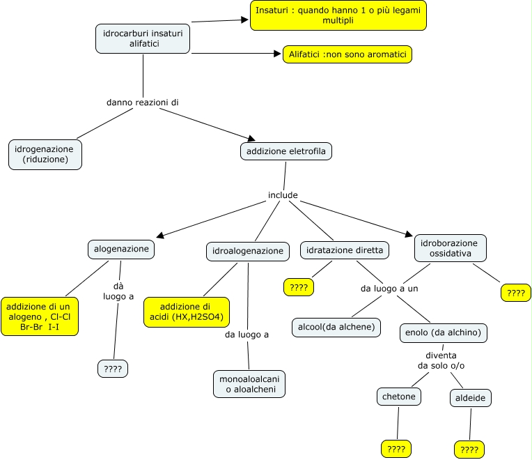 Questa Cmap, creata con IHMC CmapTools, contiene informazioni relative a: insaturi, addizione eletrofila include idratazione diretta, idroborazione ossidativa da luogo a un enolo (da alchino), idratazione diretta ????, chetone ????, idroalogenazione da luogo a monoaloalcani o aloalcheni, idratazione diretta da luogo a un enolo (da alchino), aldeide ????, idrocarburi insaturi alifatici Alifatici :non sono aromatici, idratazione diretta da luogo a un alcool(da alchene), idrocarburi insaturi alifatici Insaturi : quando hanno 1 o più legami multipli, enolo (da alchino) diventa da solo o/o chetone, alogenazione addizione di un alogeno , Cl-Cl Br-Br I-I, alogenazione dà luogo a ????, idroborazione ossidativa ????, idroborazione ossidativa da luogo a un alcool(da alchene), idrocarburi insaturi alifatici danno reazioni di idrogenazione (riduzione), idroalogenazione addizione di acidi (HX,H2SO4), idrocarburi insaturi alifatici danno reazioni di addizione eletrofila, addizione eletrofila include idroborazione ossidativa, addizione eletrofila include alogenazione