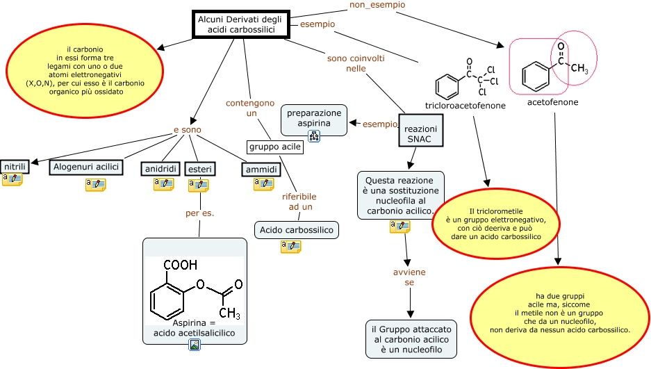 Questa Cmap, creata con IHMC CmapTools, contiene informazioni relative a: Mappa Staffo-derivati deglia acidi carbossilici, Alcuni Derivati degli acidi carbossilici e sono Alogenuri acilici, Alcuni Derivati degli acidi carbossilici sono coinvolti nelle reazioni SNAC, acetofenone ha due gruppi acile ma, siccome il metile non è un gruppo che da un nucleofilo, non deriva da nessun acido carbossilico., Questa reazione è una sostituzione nucleofila al carbonio acilico. avviene se il Gruppo attaccato al carbonio acilico è un nucleofilo, Alcuni Derivati degli acidi carbossilici esempio tricloroacetofenone, tricloroacetofenone Il triclorometile è un gruppo elettronegativo, con ciò deeriva e può dare un acido carbossilico, Alcuni Derivati degli acidi carbossilici e sono nitrili, Alcuni Derivati degli acidi carbossilici e sono esteri, gruppo acile riferibile ad un Acido carbossilico, Alcuni Derivati degli acidi carbossilici il carbonio in essi forma tre legami con uno o due atomi elettronegativi (X,O,N), per cui esso è il carbonio organico più ossidato, Alcuni Derivati degli acidi carbossilici non_esempio acetofenone, Alcuni Derivati degli acidi carbossilici contengono un gruppo acile, reazioni SNAC Questa reazione è una sostituzione nucleofila al carbonio acilico., esteri per es. Aspirina = acido acetilsalicilico, reazioni SNAC esempio preparazione aspirina, Alcuni Derivati degli acidi carbossilici e sono anidridi, Alcuni Derivati degli acidi carbossilici e sono ammidi