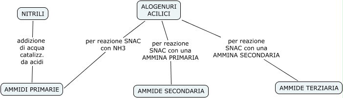 Questa Cmap, creata con IHMC CmapTools, contiene informazioni relative a: come ottenere le ammidi, ALOGENURI ACILICI per reazione SNAC con NH3 AMMIDI PRIMARIE, ALOGENURI ACILICI per reazione SNAC con una AMMINA PRIMARIA AMMIDE SECONDARIA, ALOGENURI ACILICI per reazione SNAC con una AMMINA SECONDARIA AMMIDE TERZIARIA, NITRILI addizione di acqua catalizz. da acidi AMMIDI PRIMARIE