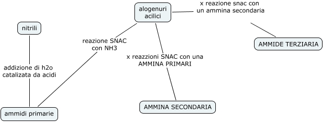 Questa Cmap, creata con IHMC CmapTools, contiene informazioni relative a: nitrili, alogenuri acilici reazione SNAC con NH3 ammidi primarie, alogenuri acilici x reazzioni SNAC con una AMMINA PRIMARI AMMINA SECONDARIA, nitrili addizione di h2o catalizata da acidi ammidi primarie, alogenuri acilici x reazione snac con un ammina secondaria AMMIDE TERZIARIA