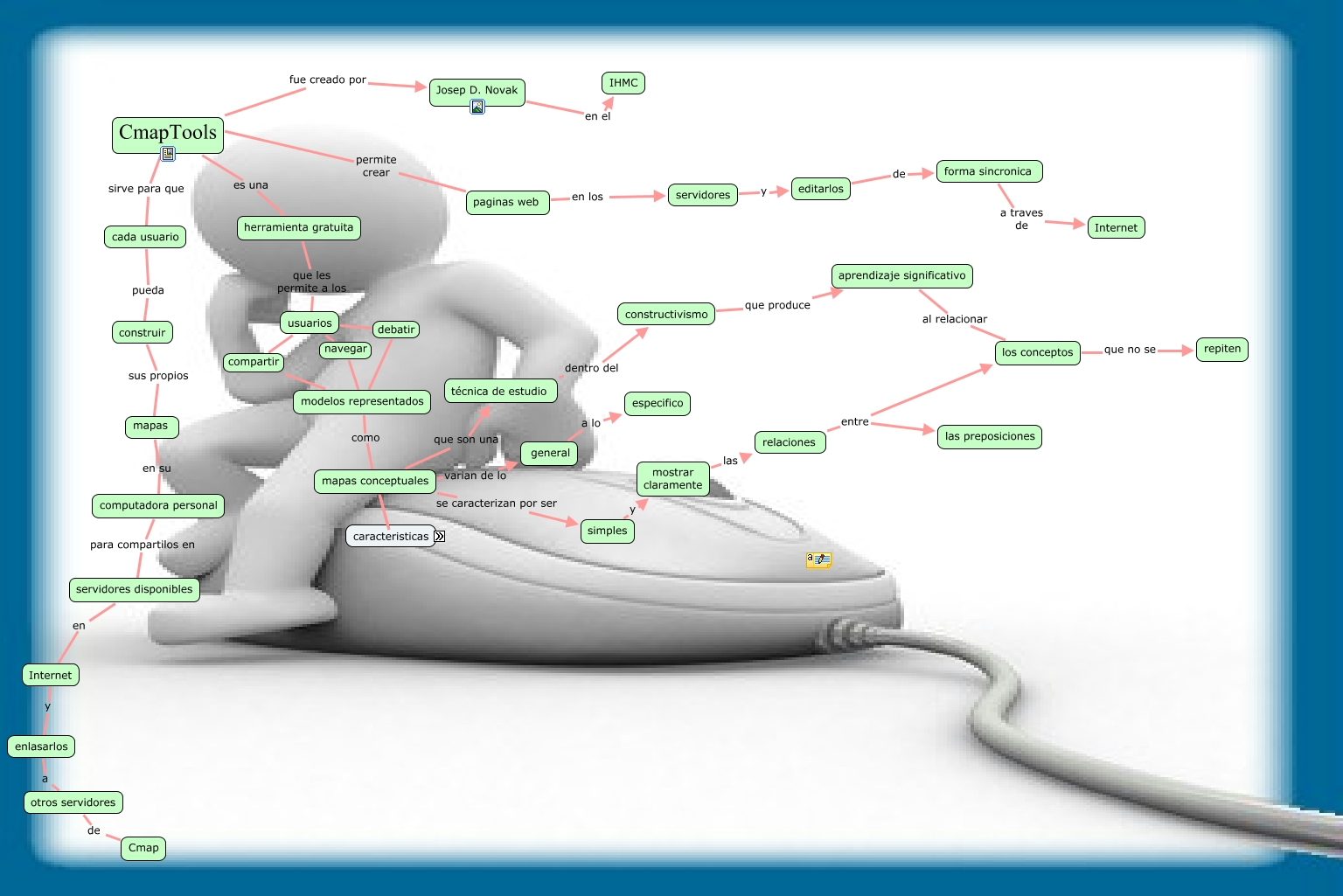 Este Cmap, tiene información relacionada con: CMap Arantxa Santamaría 12 B, CmapTools sirve para que cada usuario, escritos en Mayúscula, computadora personal para compartilos en servidores disponibles, simples y mostrar claramente, mapas conceptuales se caracterizan por ser simples, cada usuario pueda construir, mapas en su computadora personal, constructivismo que produce aprendizaje significativo, forma sincronica a traves de Internet, herramienta gratuita que les permite a los usuarios, general a lo especifico, mostrar claramente las relaciones, mapas conceptuales deben ser vistosos, los conceptos que no se repiten, otros servidores de Cmap, relaciones entre los conceptos, CmapTools permite crear paginas web, mapas conceptuales deben usar palabras de enlace, servidores y editarlos, editarlos de forma sincronica