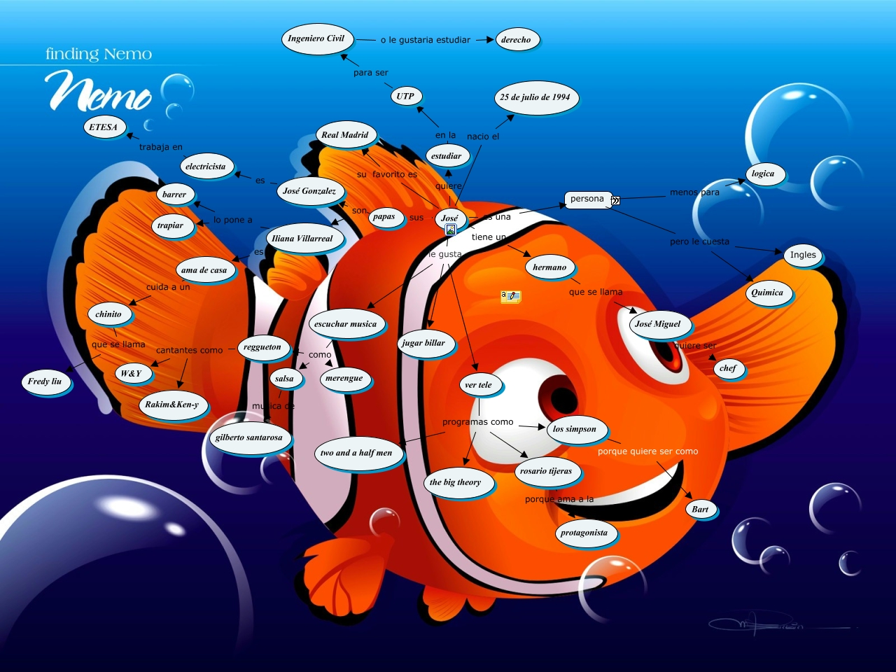 Este Cmap, tiene información relacionada con: jose gonzalez, escuchar musica como merengue, José tiene un hermano, Iliana Villarreal es ama de casa, salsa musica de gilberto santarosa, rosario tijeras porque ama a la protagonista, reggueton cantantes como Rakim&Ken-y, Ingeniero Civil o le gustaria estudiar derecho, José sus papas, UTP para ser Ingeniero Civil, papas son José Gonzalez, ver tele programas como rosario tijeras, Iliana Villarreal lo pone a trapiar, escuchar musica como reggueton, ver tele programas como los simpson, ama de casa cuida a un chinito, los simpson porque quiere ser como Bart, hermano que se llama José Miguel, José le gusta ver tele, José le gusta jugar billar, chinito que se llama Fredy liu