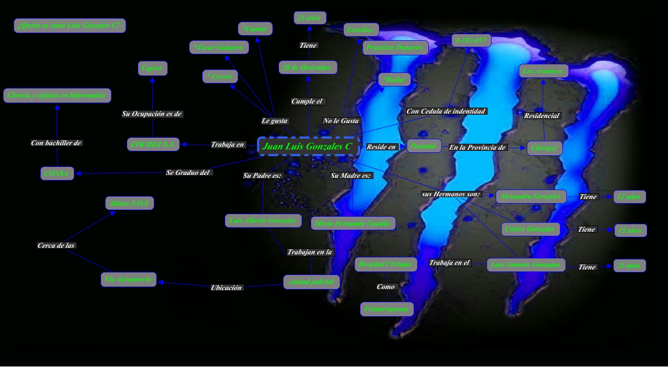 Este Cmap, tiene información relacionada con: 12°B Juan Luis eibar Daniel Rovira, COCHEZ S.A Su Ocupación es de Cajero, Juan Luis Gonzales C sus Hermanos son: Alexandra Gonzales, Juan Luis Gonzales C Le gusta * Correr, Juan Luis Gonzales C sus Hermanos son: Carlos Gonzales, Juan Luis Gonzales C Se Graduo del CONSA, Luis Antonio Gonzales Tiene 21 años, ciudad judicial Ubicación Via Aeropuerto, Chiriqui Residencial Los Avanicos, Juan Luis Gonzales C Su Padre es: Luis Alberto Gonzales, Maria Fernanda Castillo Trabajan en la ciudad judicial, Hospital Chiriqui Como Fisioterapeuta, 28 de Diciembre Tiene 21 años, Alexandra Gonzales Tiene 12 años, CONSA Con bachiller de Ciencia y enfasis en Informatica, Juan Luis Gonzales C Le gusta *Tocar Guitarra, Juan Luis Gonzales C Le gusta *Cantar, Juan Luis Gonzales C No le Gusta *Bailar, Juan Luis Gonzales C No le Gusta Practicar Deportes, Juan Luis Gonzales C sus Hermanos son: Luis Antonio Gonzales, Panamá En la Provincia de Chiriqui