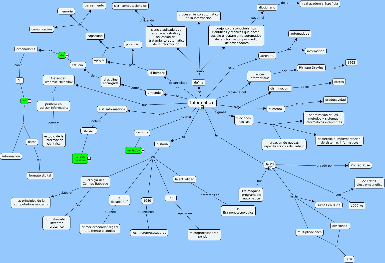 Este Cmap, tiene información relacionada con: historia de inf. 12b, disciplina encargada del estudio, la decada 40´ se creo primer ordenador digital totalmente elctonico, acronimo de information, realizar son entrada, desarrollo de software como y muchos mas, ciencias de la computacion como investigacion, almacenamiento y consulta de inf. como y muchos mas, funciones basicas son optimizacion de los metodos y sistemas informaticos exsistentes, potenciar su capacidad, Informática se entiende, estudio de tecnicas, primero en utilizar informatika como el estudio de la informacion cientifica, funciones basicas son creacion de nuevas especificaciones de trabajo, el hombre para apoyar, frances Informatique por Philippe Dreyfus, capacidad de comunicación, Informática algunas funciones basicas, Informática avarca campos, la Z3 hacia diviciones, medicina como investigacion