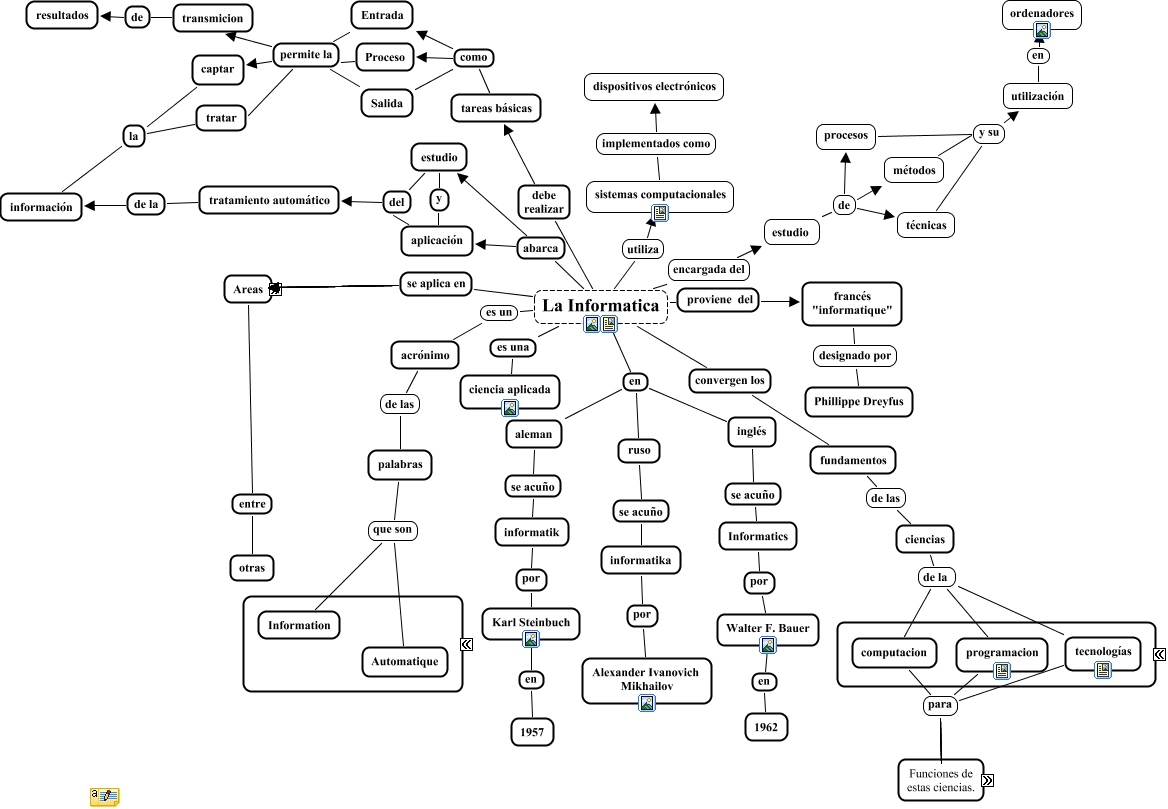 Este Cmap, tiene información relacionada con: Informatica, Walter F. Bauer en 1962, ruso se acuño informatika, Informatics por Walter F. Bauer, Proceso permite la tratar, tareas básicas como Entrada, Entrada permite la tratar, tecnologías para cuestiones, La Informatica convergen los fundamentos, redes de computadoras, La Informatica se aplica en investigacion, La Informatica se aplica en fisica, La Informatica se aplica en comunicaciones, aplicación del tratamiento automático, desarrollo de software, estudio y aplicación, La Informatica utiliza sistemas computacionales, programacion para inteligencia artificial, utilización en ordenadores, programacion para redes, Areas entre otras