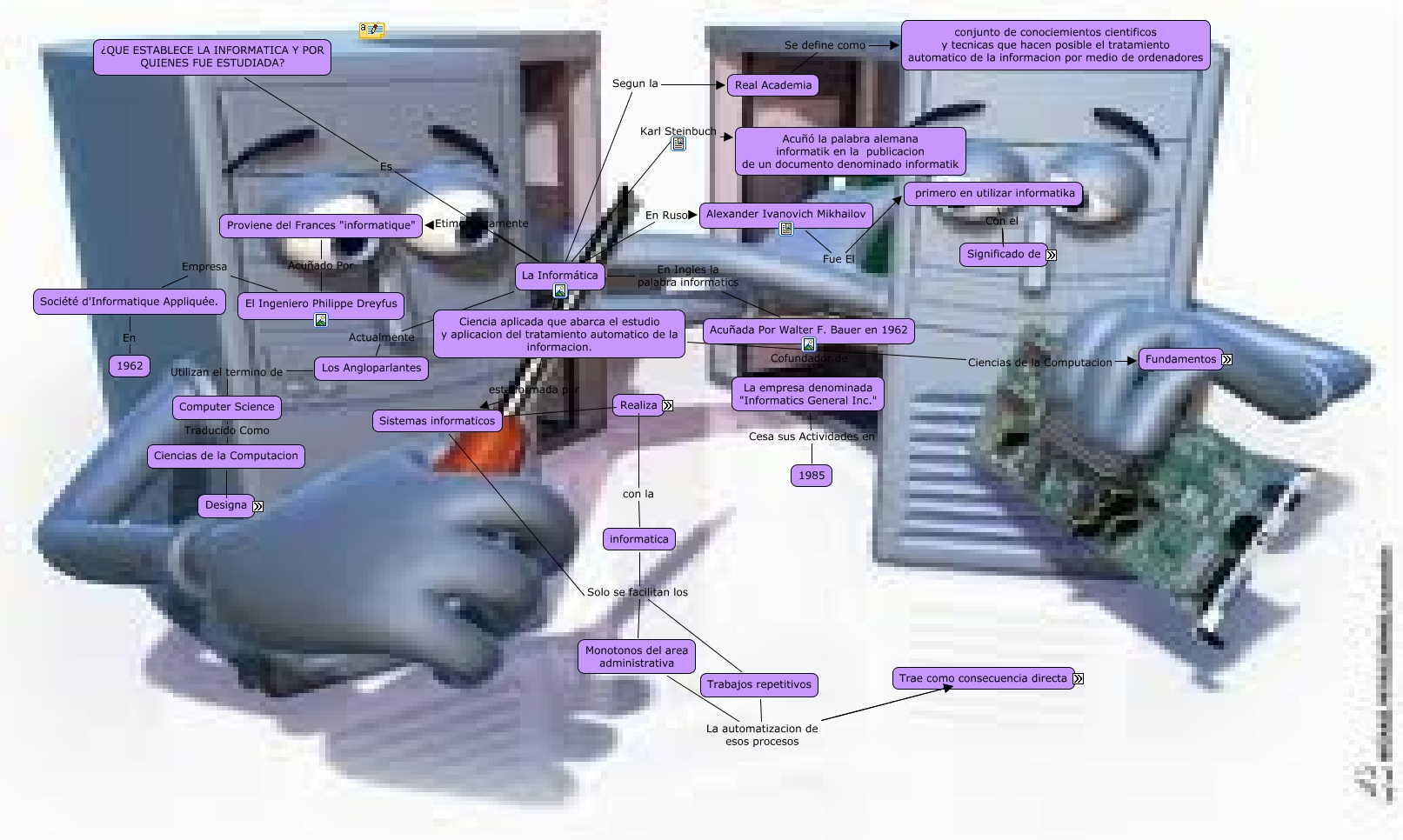 Este Cmap, tiene información relacionada con: La Informatica-Ale Araúz, Los Angloparlantes Utilizan el termino de Computer Science, ¿QUE ESTABLECE LA INFORMATICA Y POR QUIENES FUE ESTUDIADA? Es La Informática, Trabajos repetitivos La automatizacion de esos procesos una disminucion de los costes, Sistemas informaticos Solo se facilitan los Monotonos del area administrativa, Proviene del Frances "informatique" Acuñado Por El Ingeniero Philippe Dreyfus, Ciencias de la Computacion Designa El estudio Aplicado, El estudio Aplicado Mientras que designa Como information technology o data processing., La Informática En Ruso Alexander Ivanovich Mikhailov, Ciencias de la Computacion Designa El estudio Cientifico, El estudio Cientifico Mientras que Designa Como information technology o data processing., Trabajos repetitivos La automatizacion de esos procesos Incremento en la productividad, Sistemas informaticos Solo se facilitan los Trabajos repetitivos, El Ingeniero Philippe Dreyfus Empresa Société d'Informatique Appliquée., primero en utilizar informatika Con el Estudio, La Informática En Ingles la palabra informatics Acuñada Por Walter F. Bauer en 1962, Entrada Es la captacion de informacion, primero en utilizar informatika Con el Organizacion, Société d'Informatique Appliquée. En 1962, La Informática Actualmente Los Angloparlantes, Real Academia Se define como conjunto de conociemientos cientificos y tecnicas que hacen posible el tratamiento automatico de la informacion por medio de ordenadores