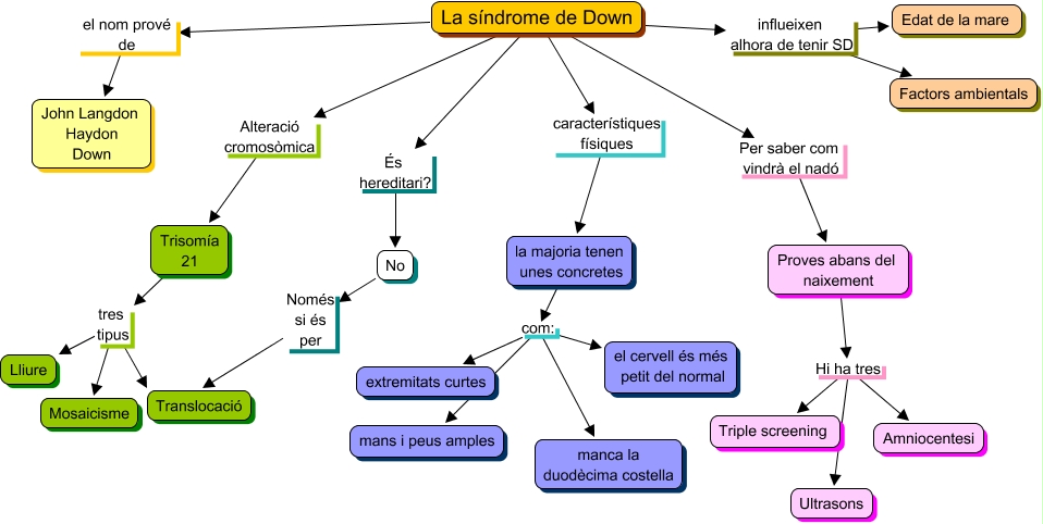 Este Cmap, tiene información relacionada con: Sindrome, No Només si és per Translocació, La síndrome de Down influeixen alhora de tenir SD Edat de la mare, Proves abans del naixement Hi ha tres Ultrasons, Proves abans del naixement Hi ha tres Triple screening, La síndrome de Down influeixen alhora de tenir SD Factors ambientals, La síndrome de Down Alteració cromosòmica Trisomía 21, La síndrome de Down Per saber com vindrà el nadó Proves abans del naixement, Trisomía 21 tres tipus Lliure, La síndrome de Down És hereditari? No, la majoria tenen unes concretes com: mans i peus amples, Trisomía 21 tres tipus Mosaicisme, la majoria tenen unes concretes com: manca la duodècima costella, La síndrome de Down el nom prové de John Langdon Haydon Down, Proves abans del naixement Hi ha tres Amniocentesi, la majoria tenen unes concretes com: extremitats curtes, Trisomía 21 tres tipus Translocació, La síndrome de Down característiques físiques la majoria tenen unes concretes, la majoria tenen unes concretes com: el cervell és més petit del normal