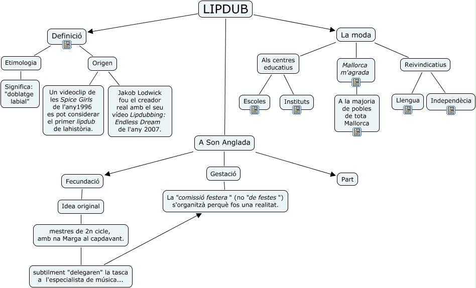 Este Cmap, tiene información relacionada con: T'estimo molt, LIPDUB A Son Anglada, La moda Als centres educatius, La moda Mallorca m'agrada, A Son Anglada Gestació, Gestació La "comissió festera" (no "de festes") s'organitzà perquè fos una realitat., Origen Un videoclip de les Spice Girls de l'any1996 es pot considerar el primer lipdub de lahistòria., Definició Etimologia, LIPDUB La moda, mestres de 2n cicle, amb na Marga al capdavant. subtilment "delegaren" la tasca a l'especialista de música..., Origen Jakob Lodwick fou el creador real amb el seu vídeo Lipdubbing: Endless Dream de l'any 2007., Definició Origen, Etimologia Significa: "doblatge labial", Reivindicatius Independècia, A Son Anglada Fecundació, A Son Anglada Part, La moda Reivindicatius, Fecundació Idea original, Mallorca m'agrada A la majoria de pobles de tota Mallorca, LIPDUB Definició, Als centres educatius Escoles