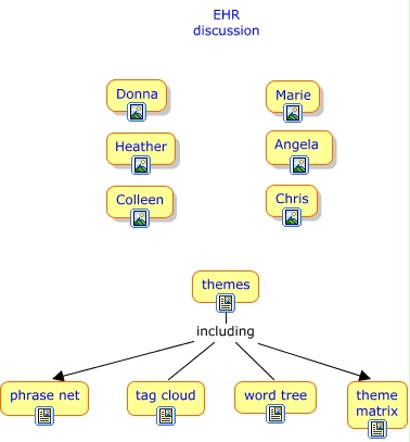 This Concept Map, created with IHMC CmapTools, has information related to: Discussion, themes including tag cloud, themes including phrase net, themes including word tree, themes including theme matrix