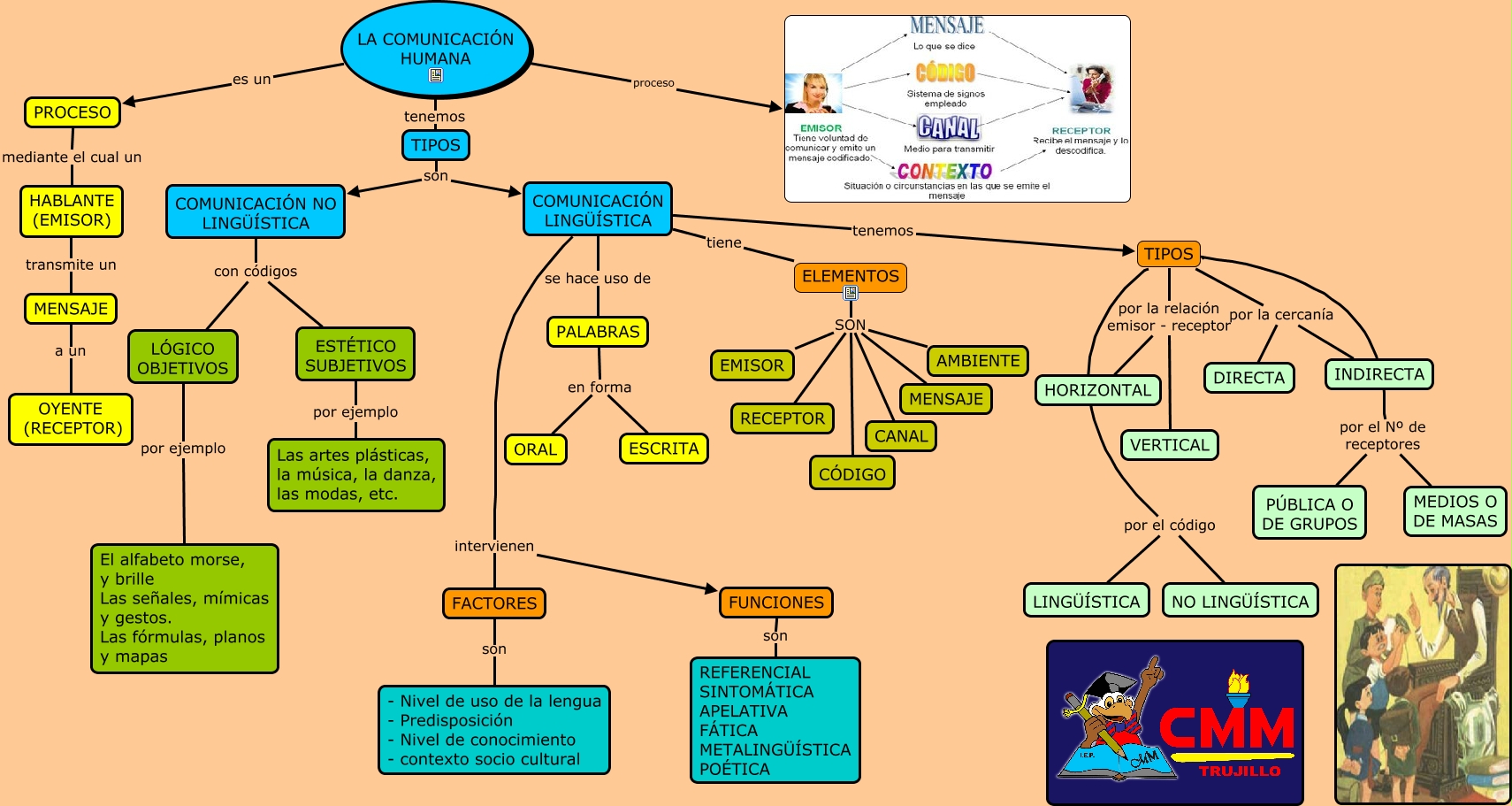 Este Cmap, tiene información relacionada con: La comunicación humana, ELEMENTOS SON CÓDIGO, PALABRAS en forma ORAL, COMUNICACIÓN LINGÜÍSTICA se hace uso de PALABRAS, FACTORES son - Nivel de uso de la lengua - Predisposición - Nivel de conocimiento - contexto socio cultural, COMUNICACIÓN LINGÜÍSTICA tenemos TIPOS, ELEMENTOS SON AMBIENTE, LÓGICO OBJETIVOS por ejemplo El alfabeto morse, y brille Las señales, mímicas y gestos. Las fórmulas, planos y mapas, ELEMENTOS SON RECEPTOR, LA COMUNICACIÓN HUMANA proceso, PROCESO mediante el cual un HABLANTE (EMISOR), TIPOS por el código NO LINGÜÍSTICA, TIPOS por el Nº de receptores PÚBLICA O DE GRUPOS, TIPOS por la relación emisor - receptor HORIZONTAL, HABLANTE (EMISOR) transmite un MENSAJE, ELEMENTOS SON EMISOR, FUNCIONES son REFERENCIAL SINTOMÁTICA APELATIVA FÁTICA METALINGÜÍSTICA POÉTICA, TIPOS por la relación emisor - receptor VERTICAL, MENSAJE a un OYENTE (RECEPTOR), TIPOS por el código LINGÜÍSTICA, TIPOS por la cercanía DIRECTA