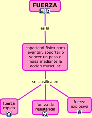 Este Cmap, tiene información relacionada con: mapa fuerza, capacidad fisica para levantar, soportar o vencer un peso o masa mediante la accion muscular se clasifica en fuerza rapida, capacidad fisica para levantar, soportar o vencer un peso o masa mediante la accion muscular se clasifica en fuerza de resistencia, capacidad fisica para levantar, soportar o vencer un peso o masa mediante la accion muscular se clasifica en fuerza explosiva, FUERZA es la capacidad fisica para levantar, soportar o vencer un peso o masa mediante la accion muscular