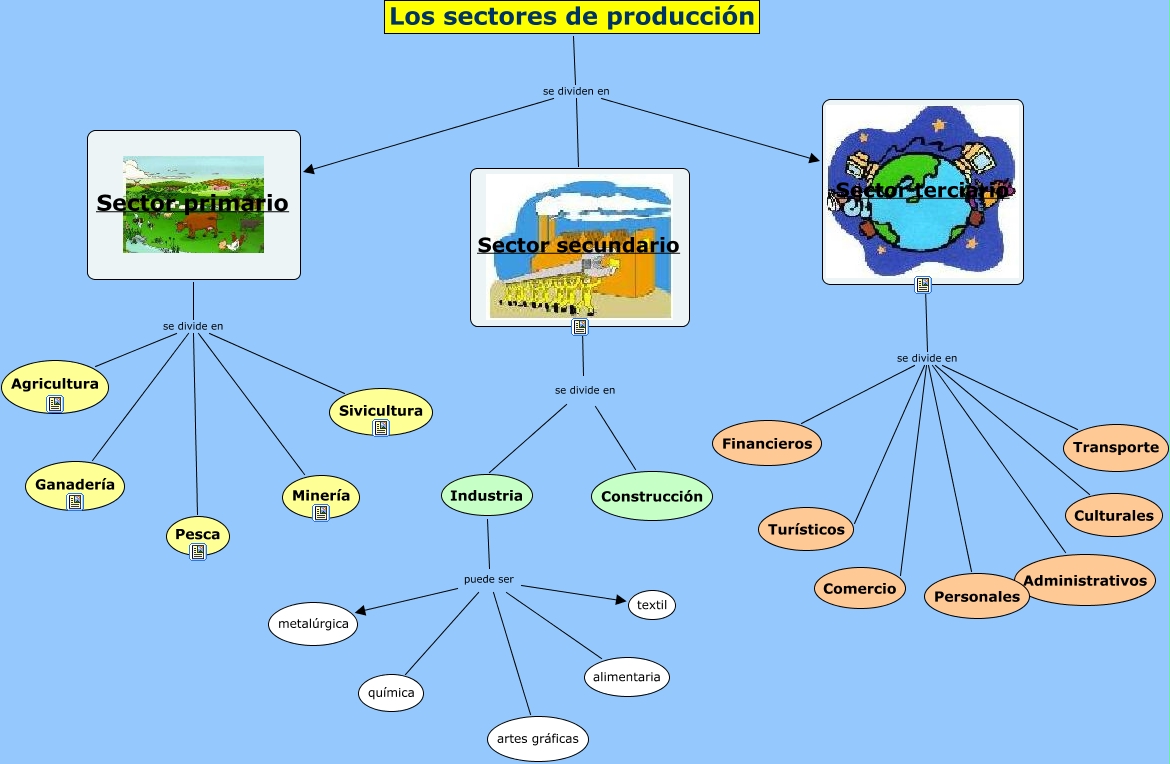 Este Cmap, tiene información relacionada con: sectores de producción, Sector primario se divide en Pesca, Sector terciario se divide en Financieros, Industria puede ser química, Sector primario se divide en Minería, Sector terciario se divide en Personales, Sector terciario se divide en Comercio, Sector secundario se divide en Construcción, Industria puede ser textil, Los sectores de producción se dividen en Sector secundario, Industria puede ser metalúrgica, Sector terciario se divide en Transporte, Sector terciario se divide en Administrativos, Sector primario se divide en Agricultura, Sector terciario se divide en Turísticos, Sector primario se divide en Ganadería, Los sectores de producción se dividen en Sector primario, Los sectores de producción se dividen en Sector terciario, Sector terciario se divide en Culturales, Sector primario se divide en Sivicultura, Industria puede ser alimentaria